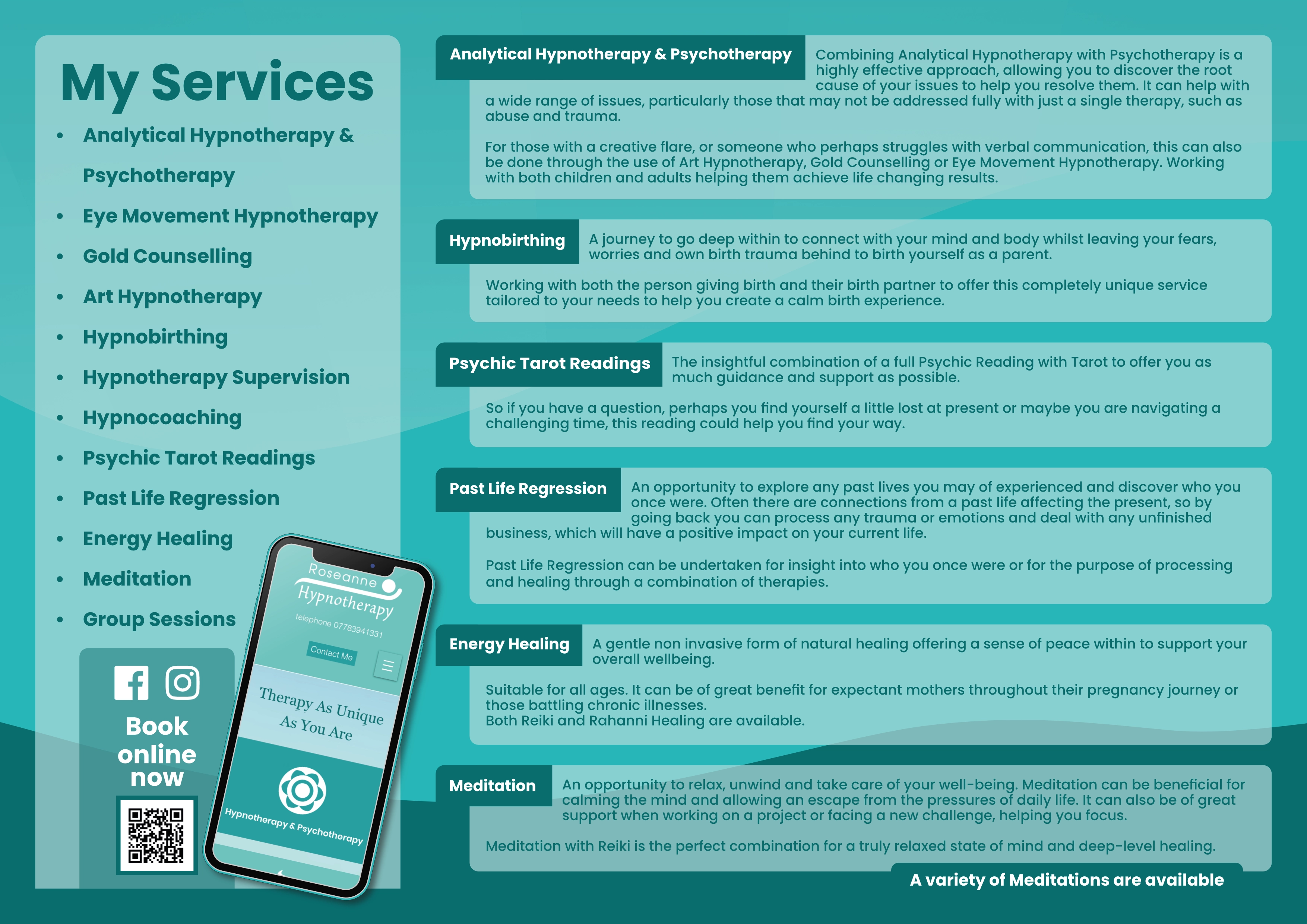 Below is a good selection of the designs, following the brand identity and colour scheme we created for Roseanne’s business, along with some of the bespoke icons and images we’ve used throughout her website.